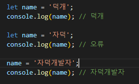 이렇게 기존의 name 이라는 변수를 선언해도, 재정의가 가능하다.