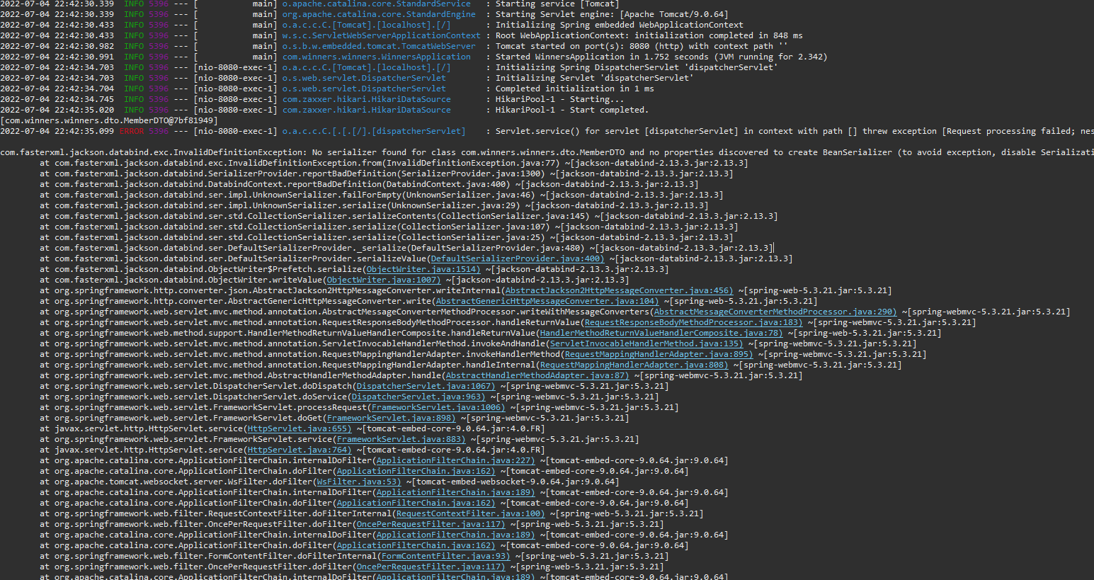 에러 로그를 보면 수상해 보이는것이 하나 있다. "Serializer".